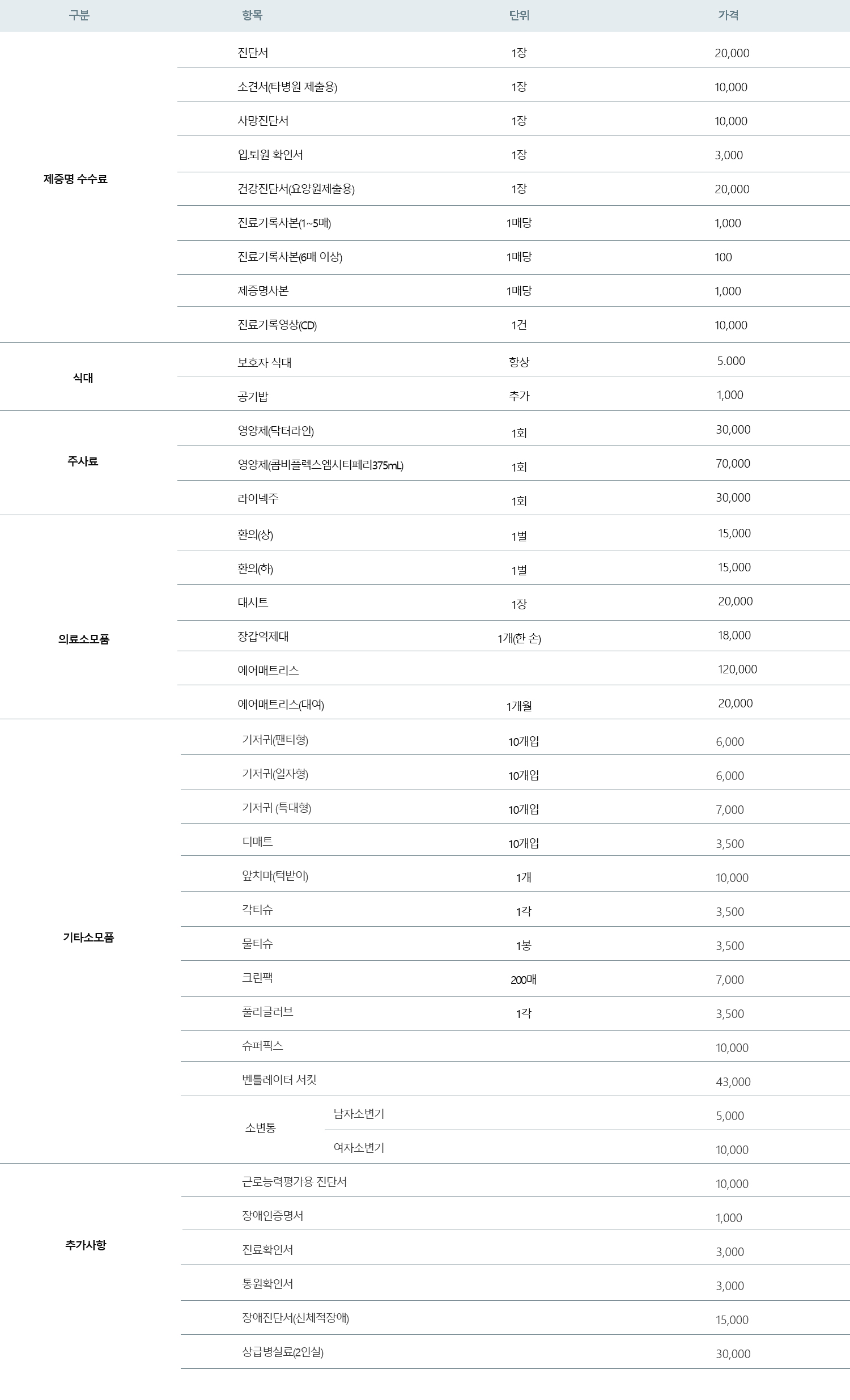 사랑요양병원 비급여 목록표